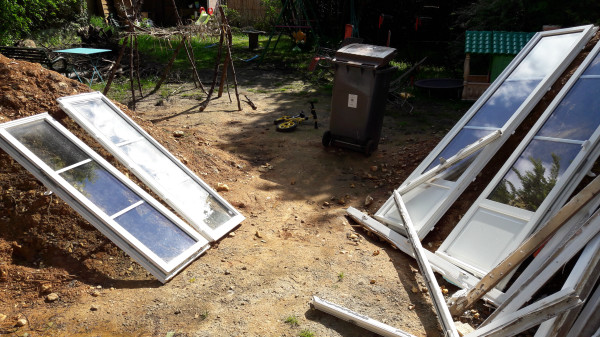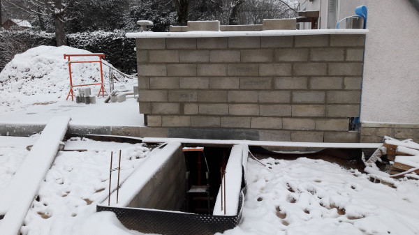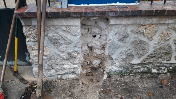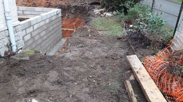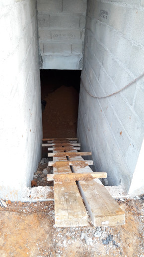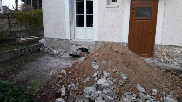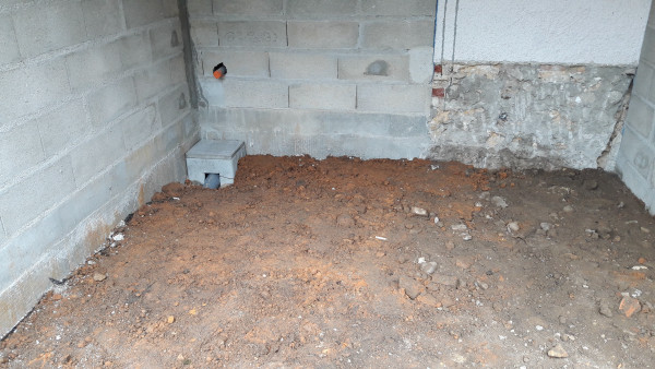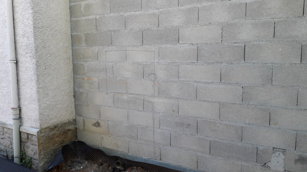 Aujourd'hui les soupiraux de la cave qui donnent sur la façade arrière de la maison ont été (partiellement) bouchés en prévision du béton qui va être coulé entre le mur actuel de la maison et celui du nouveau vide sanitaire.