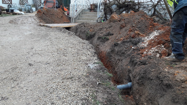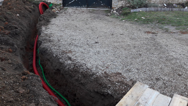 Creusage de la tranchée pour l'électricité. Enedis n'a pas rappelé.