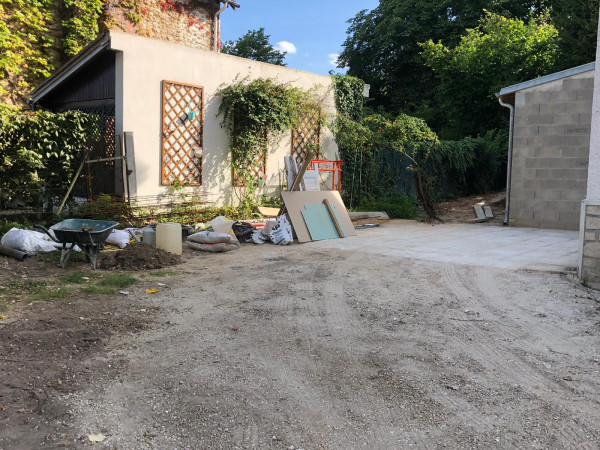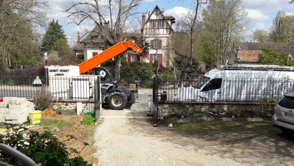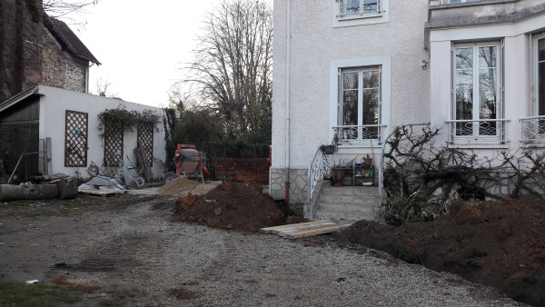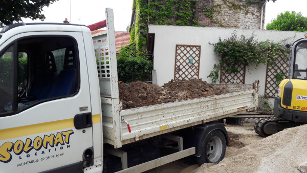Il me raconte aussi qu'ils ont loué deux camions pour faire des aller-retours à Nemours pour évacuer la terre. Hier ils ont fait 14 (!) aller-retours. Demain ils vont rendre un camion car ils ne vont pas évacuer toute la terre, ils doivent en garder pour le remblai.