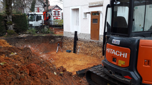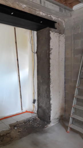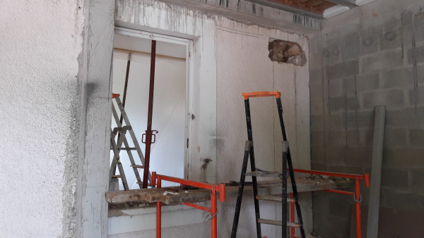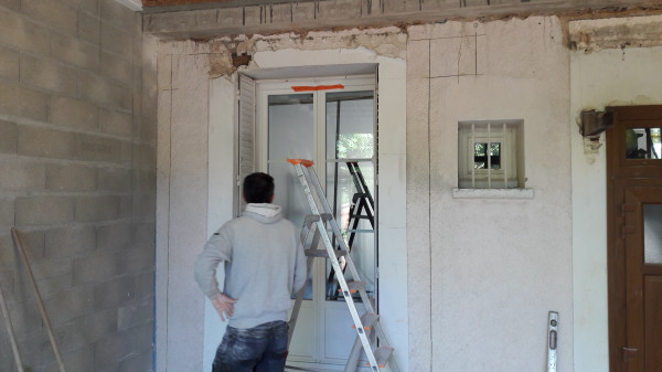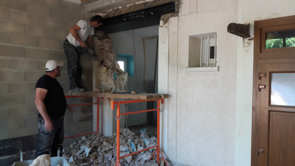 Il a d'abord fallu casser l'escalier qui reliait la porte-fenêtre du salon à la terrasse, puis agrandir le soupirail qui ventilait la cave.
