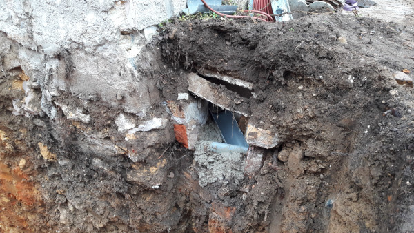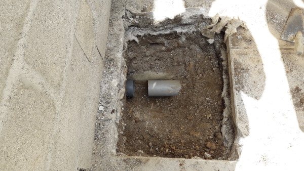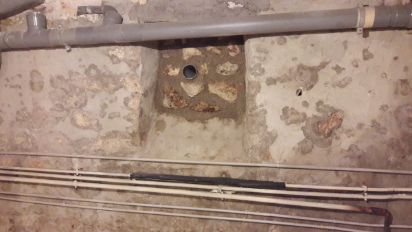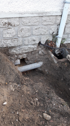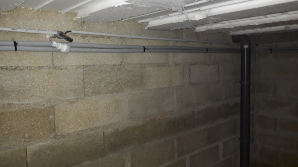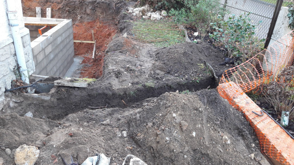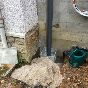 On a aussi découvert l'origine des infiltrations d'eau mystère dans la cave : au niveau du regard qui donne sur le conduit par lequel s'écoulent l'eau de la cuisine et une partie des eaux de pluie, le béton était fissuré et l'eau s'infiltrait dans la terre puis dans la cave. Au final l'eau ne passera plus par là, mais en attendant on a un petit raccord en pvc.