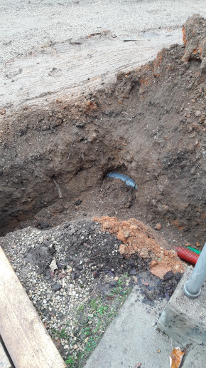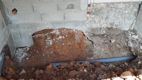Et pendant ce temps-là, Carlos a réparé les tuyaux d'évacuation actuels qui ont été abimés pendant la création de la tranchée et a commencé à y remettre de la terre.
