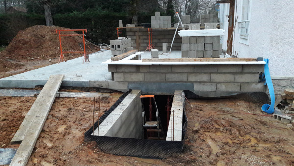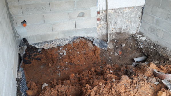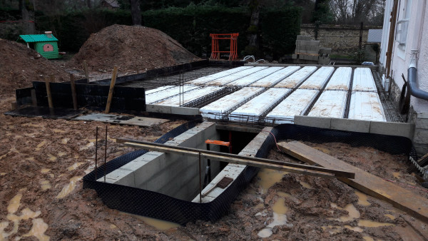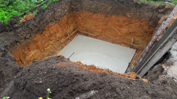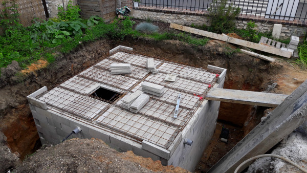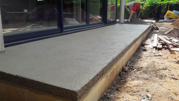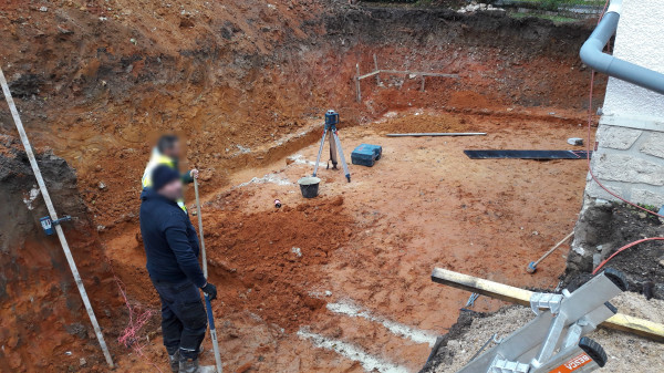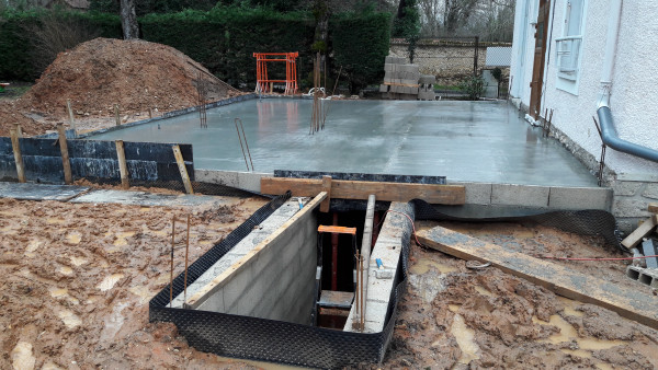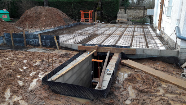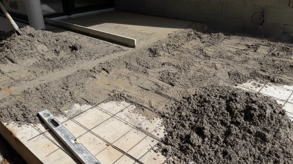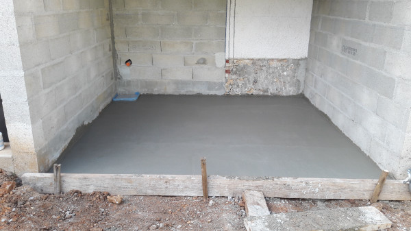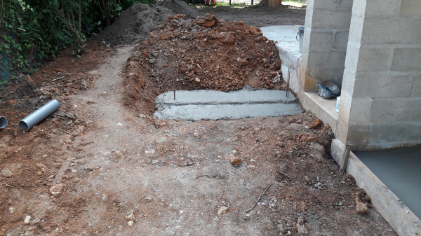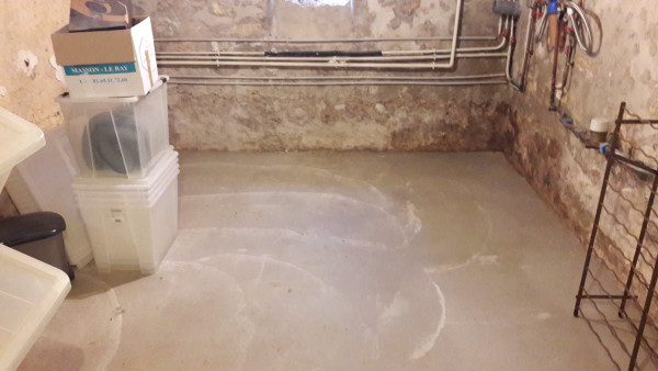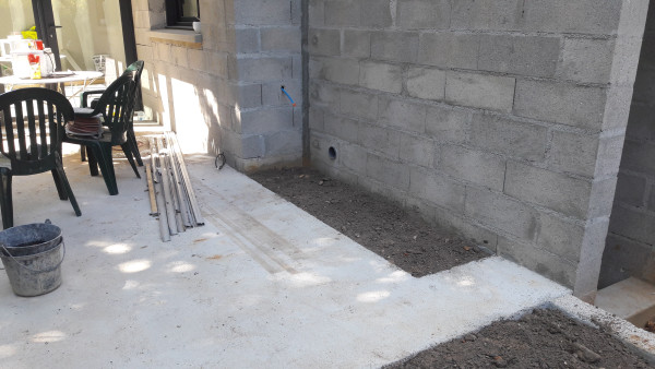 Le premier travail est de couler une dalle dans le sous-sol, qu'on a préparé le week-end précédent pour laisser le champ libre aux ouvriers.