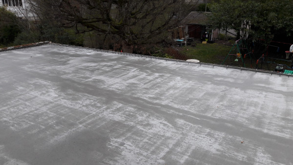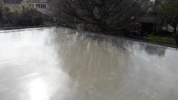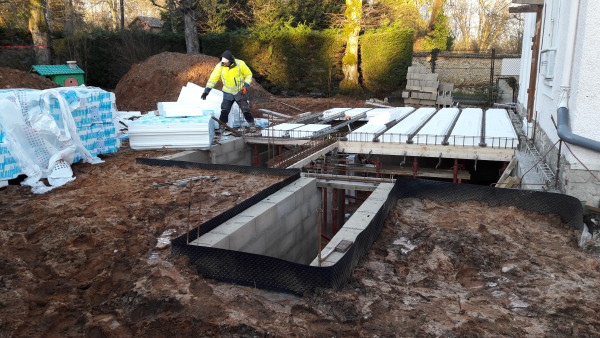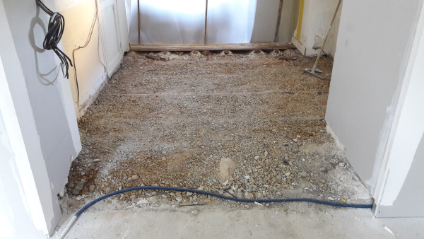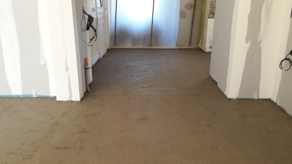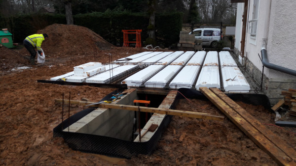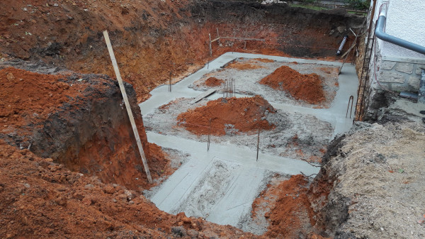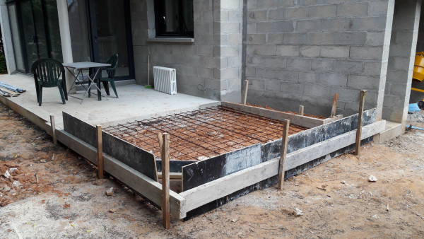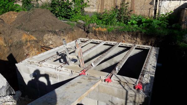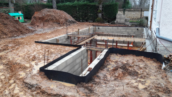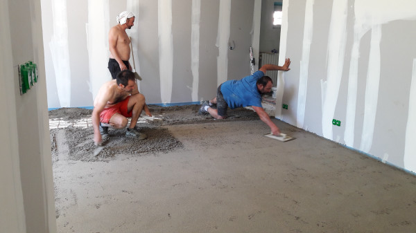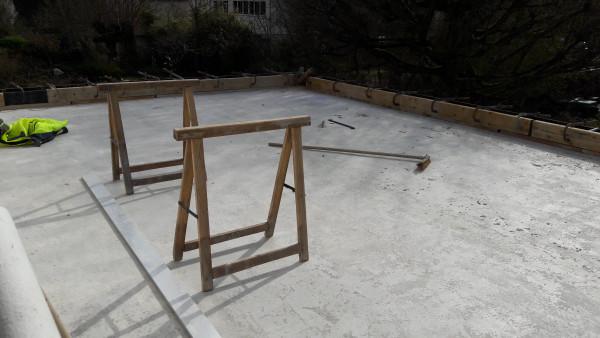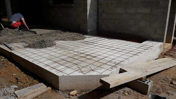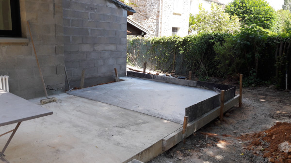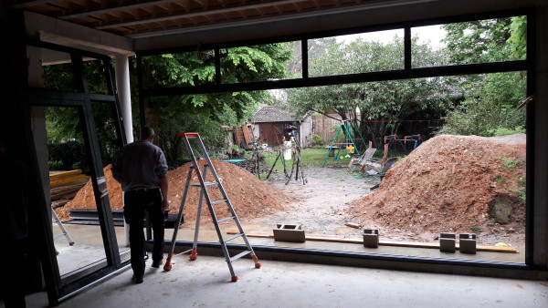 Le premier travail est de couler une dalle dans le sous-sol, qu'on a préparé le week-end précédent pour laisser le champ libre aux ouvriers.