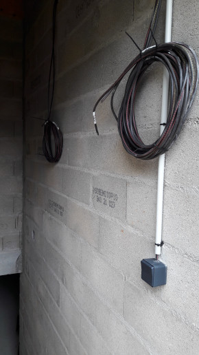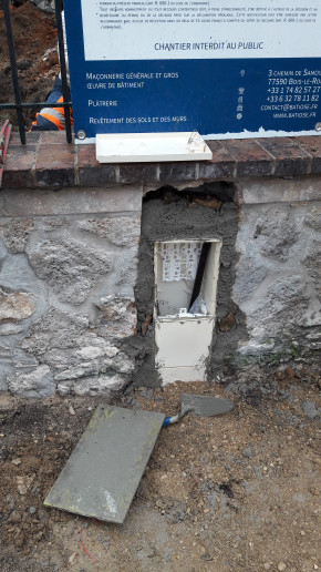 Après quelques galères pour contourner des câbles souterrains près du poteau électrique, l'installation des coffrets intérieur et extérieur est terminée.