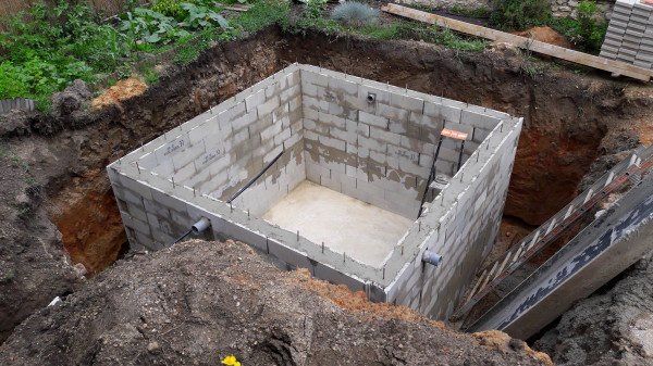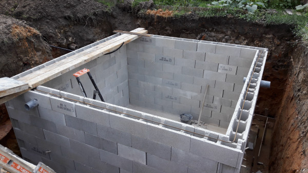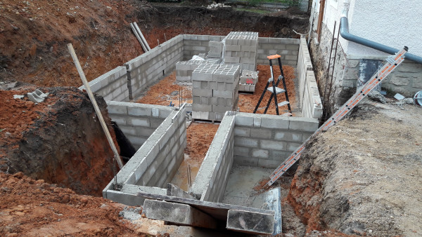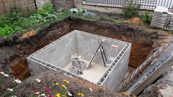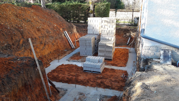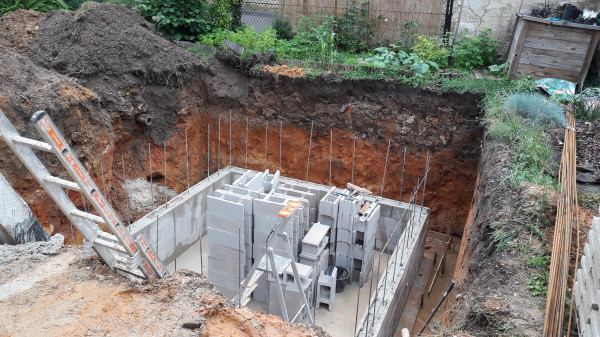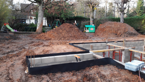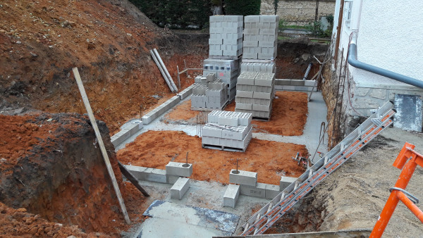 Aujourd'hui il est prévu de réceptionner des parpaings, et de commencer à en poser 2 ou 3 rangées sur les fondations.