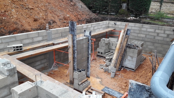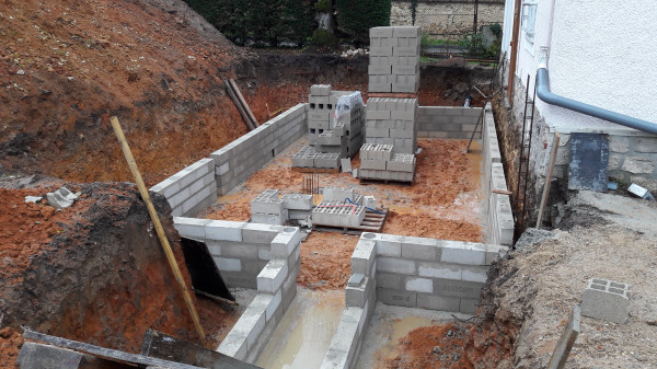 Aussi, apparition de quelques parpaings supplémentaires ainsi que du béton coulé à plusieurs endroits.