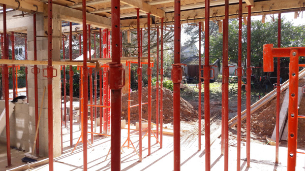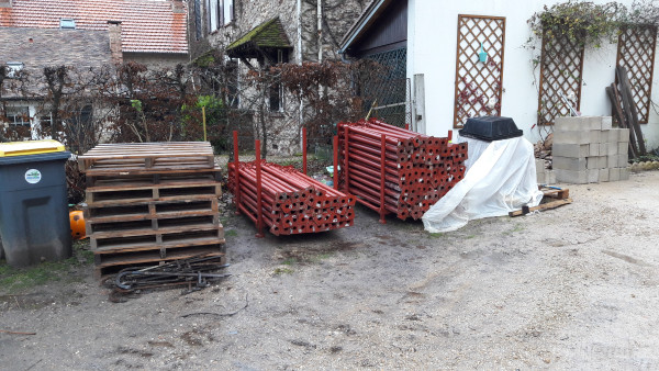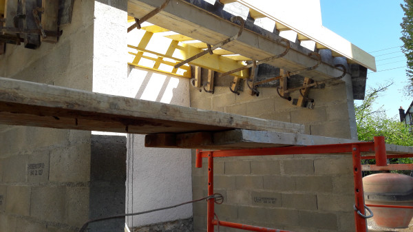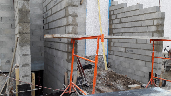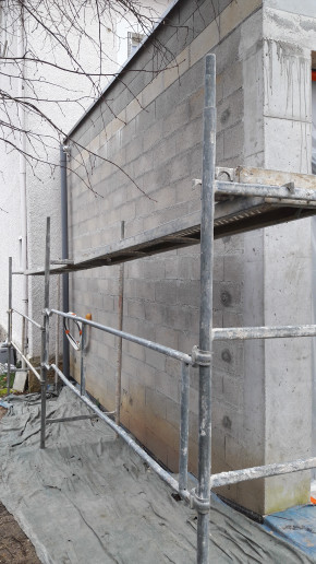 Parpaings++ 🧱🧱🧱🧱 et début d'échafaudage pour continuer à monter les parpaings.
