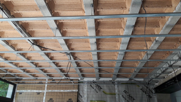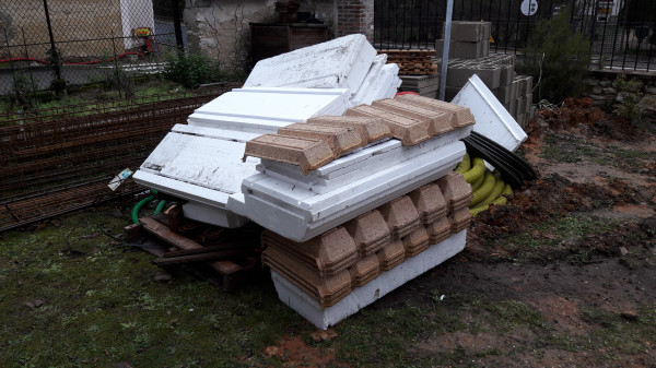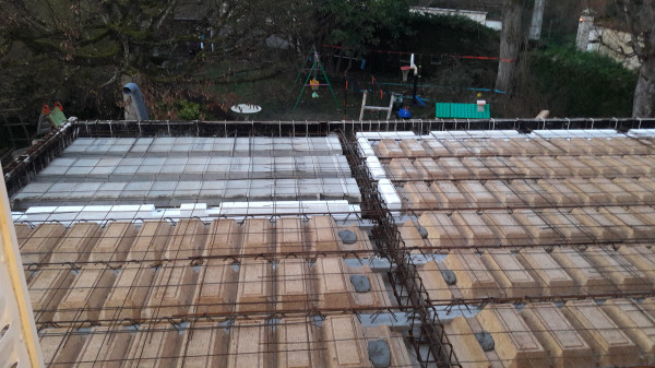 Pose des hourdis en polystyrène.