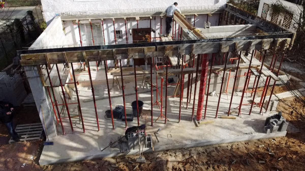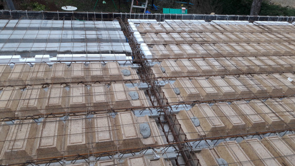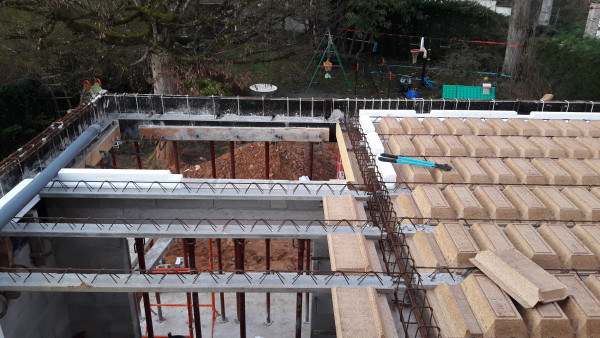 Ensuite, pose de coffrage et ferraillage pour les futures poutrelles.