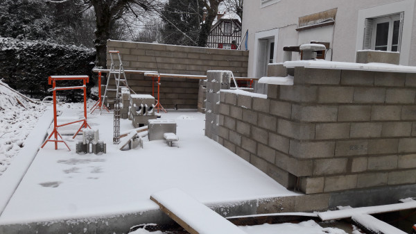 Encore des parpaings, recouverts de neige dans la nuit du 9 au 10.