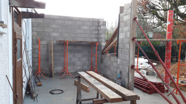 Reprise du chantier, les parpaings sont de retour.