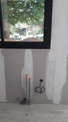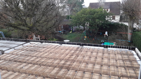 Et aussi appel de l'électricien et du plombier pour les prévenir que la dalle sera bientôt coulée et que s'ils veulent se laisser un petit passage dedans, c'est maintenant qu'il faut venir coffrer.