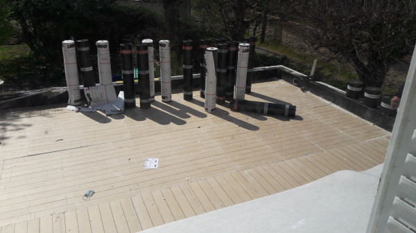 Et aussi finition au ciment autour du tuyau de sortie de la vmc de la cuisine (faite par le maçon parce que l'électricien a dit qu'il ne savait pas faire de ciment et qu'il fallait du ciment et pas du MAP pour que le ravalement tienne bien).