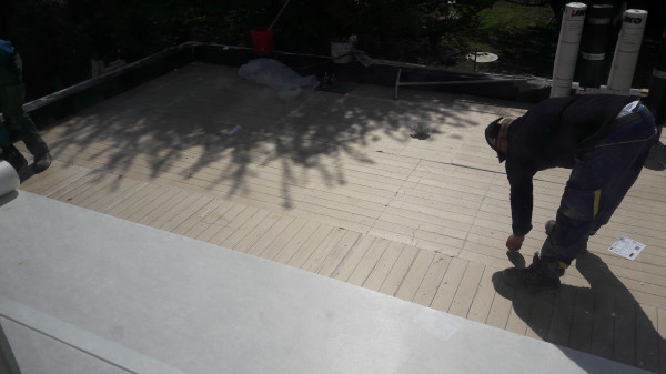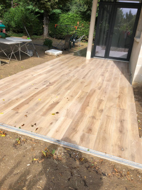 Découpe de l'angle de la terrasse et "arrondissage" des angles.