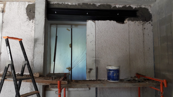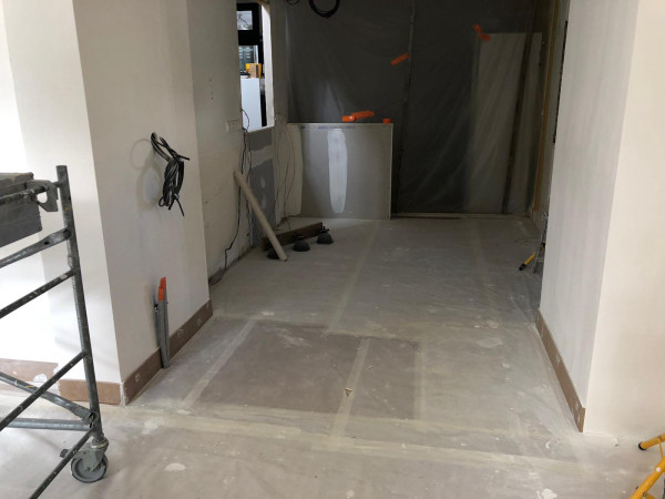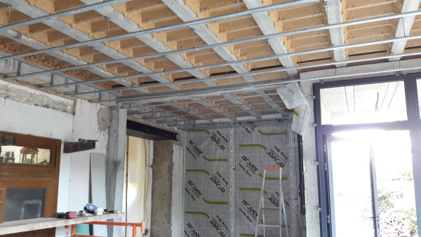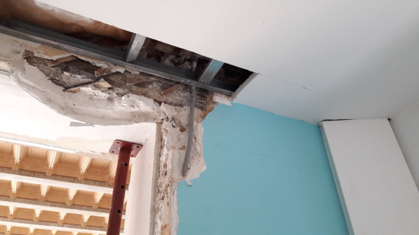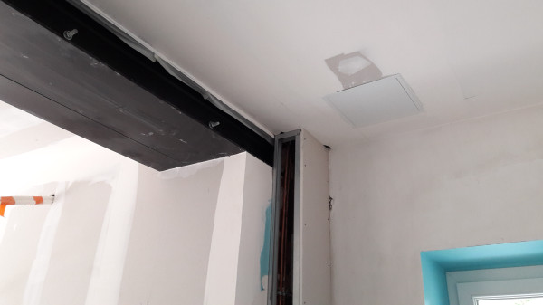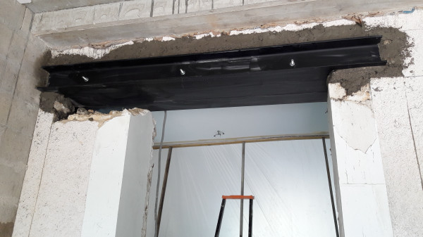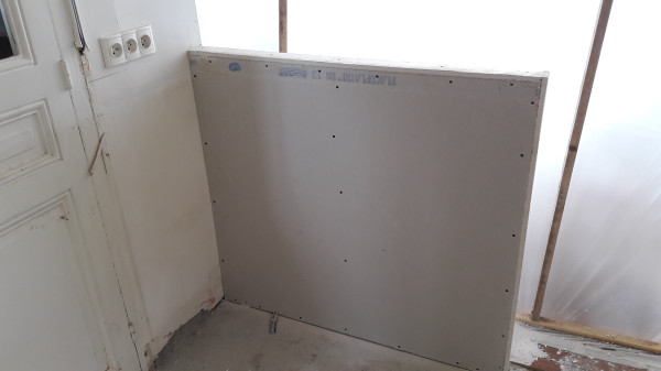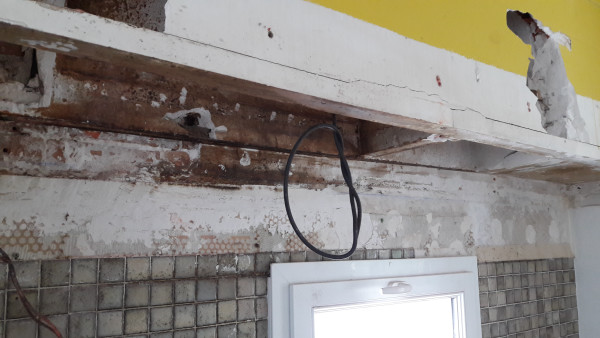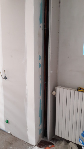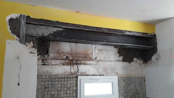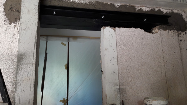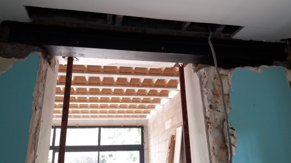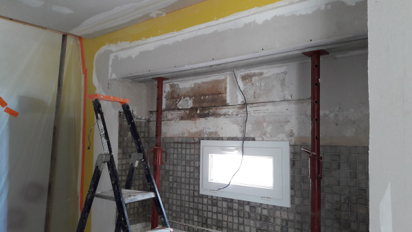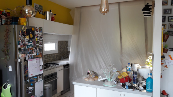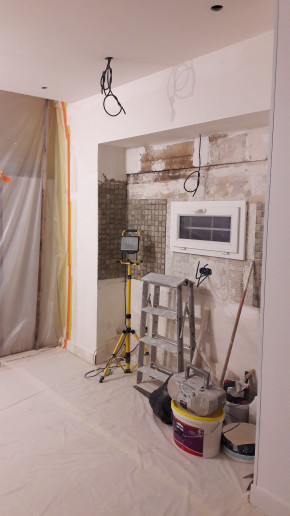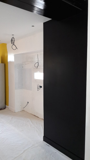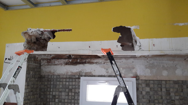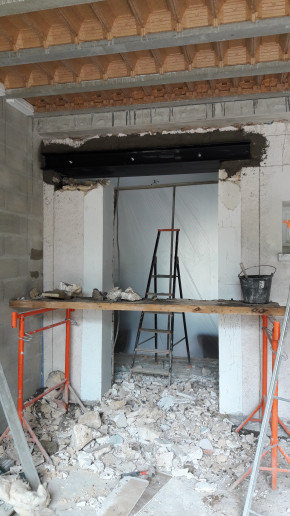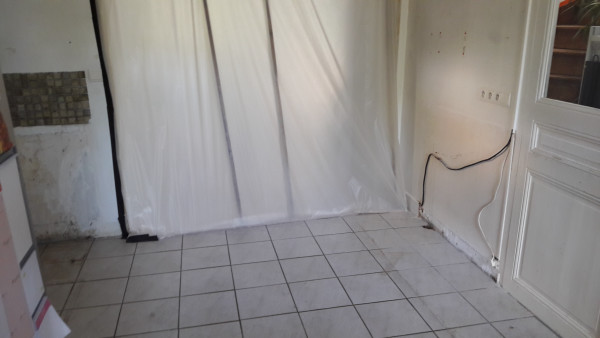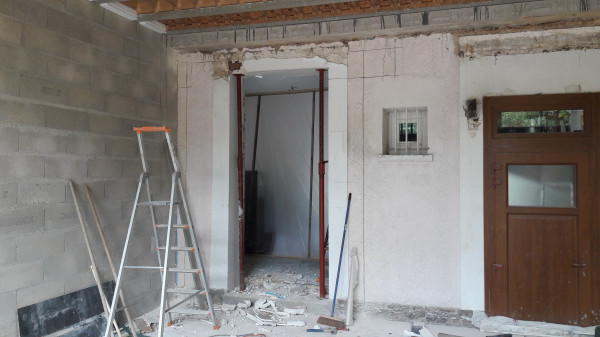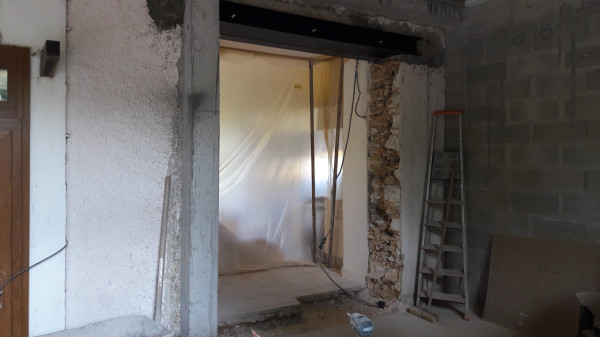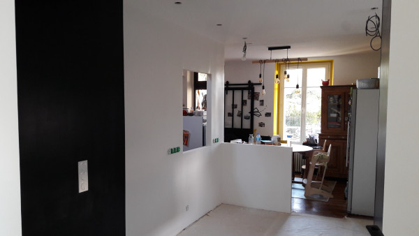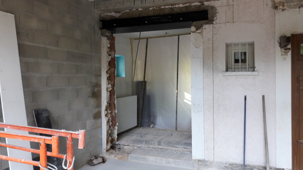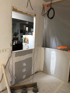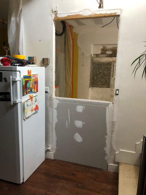Dépose de l'ancienne porte de la cuisine et remplacement par une demie-cloison.
