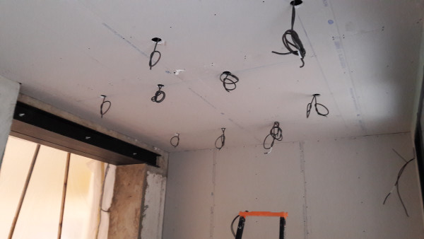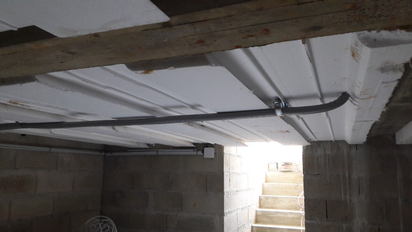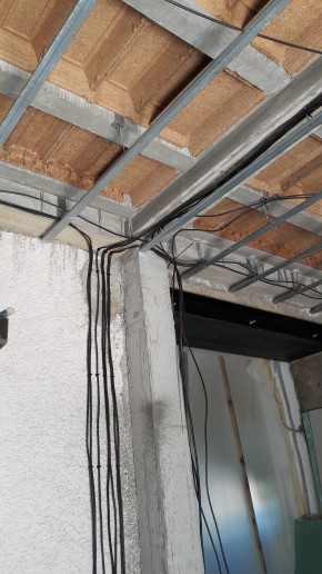 Passage de l'électricien pour poser les prises et les spots dans l'ancienne cuisine, faire en sorte que la vmc de la cave arrête de faire un bruit de machine à laver en mode essorage, et commencer le boulot pour les prises dans le vide sanitaire.