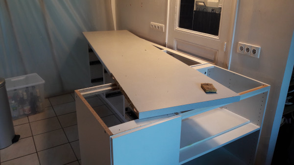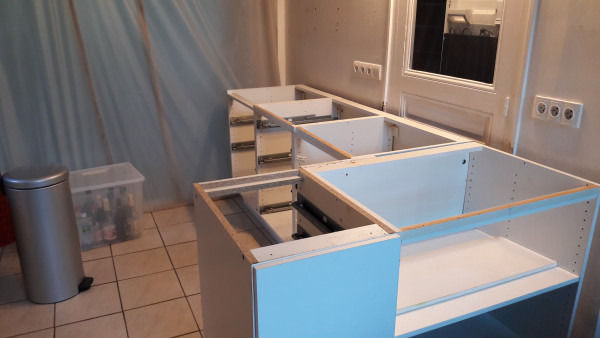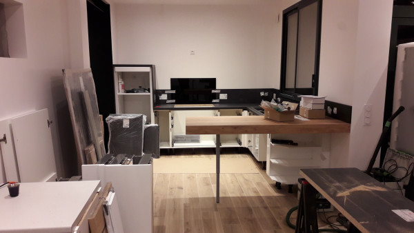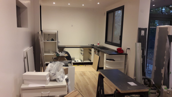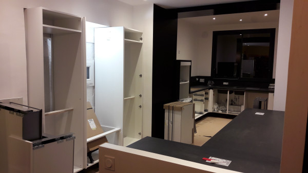 Suite de la pose de la cuisine.
