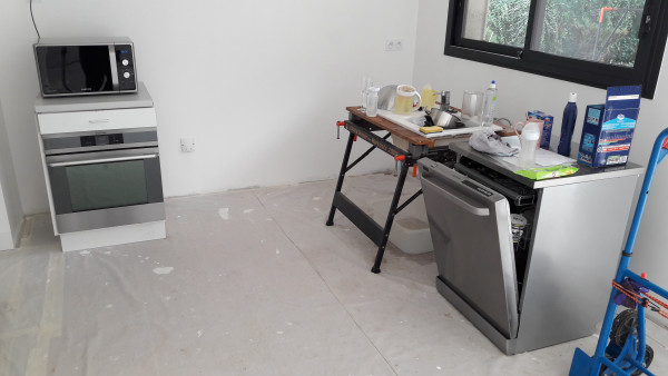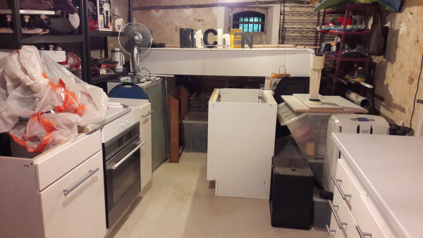On espère pouvoir s'installer une cuisine de fortune le week-end prochain 🤞
