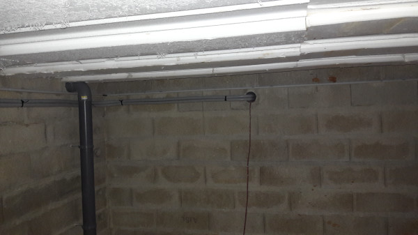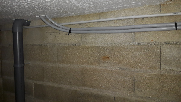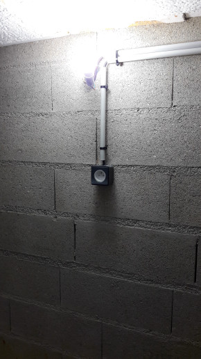 de la préparation pour l'éclairage extérieur et un interrupteur pour l'éclairage du vide sanitaire (qui n'est pas encore fixé de manière définitive vu qu'on va devoir le pousser pour le ravalement).