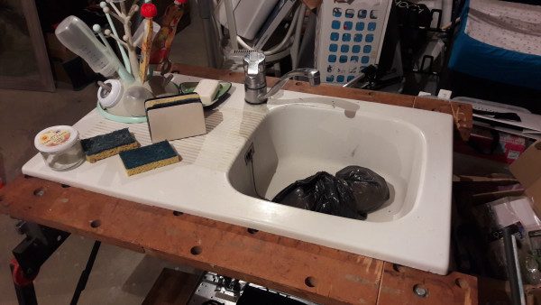 Le plombier est passé pour voir ce qu'il y avait à faire avec les tuyaux de la cuisine : rien qui pose problème ou qui soit urgent (ce qui est bien car il ferme pour les vacances vendredi soir), il faudra juste attendre pour terminer de carreler la cuisine, mais ça me convient. Avec l'évier temporaire sur tréteaux, ça sera assorti.