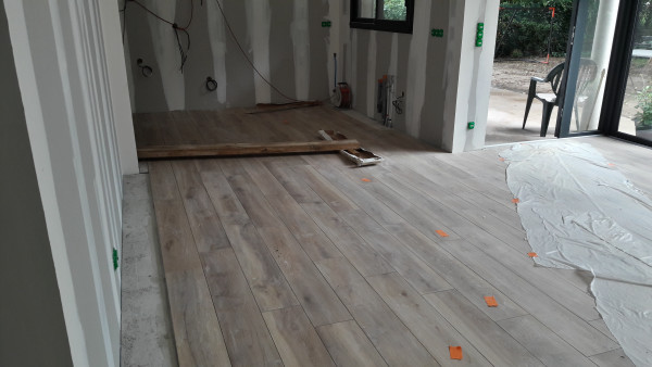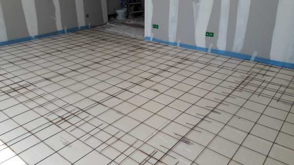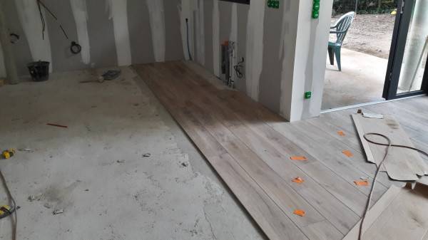 Pause dans la pose du carrelage.