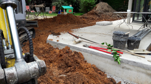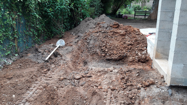 En attendant d'en arriver à cette partie-là, il y a une tranchée à creuser (délicatement car l'alimentation électrique du quartier passe par là).