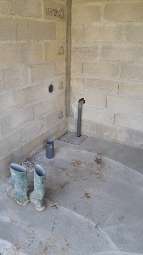 Coulage ! J'avais prévenu le plombier au cas où il veuille passer se réserver un peu de place pour ne pas avoir à percer la dalle après, mais il n'est pas passé à temps, tant pis pour lui.