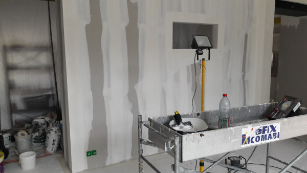 L'électricien va créer la niche pour le coffret.
