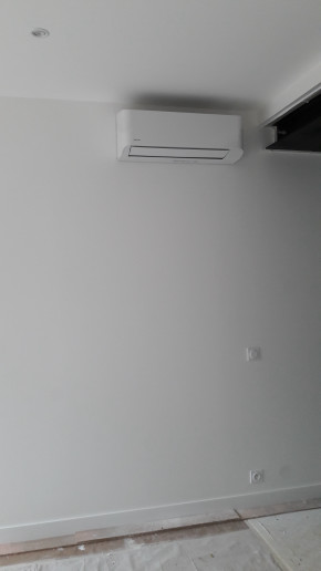 une vmc (qui a été changée deux jours après son installation parce que le modèle initial était vraiment trop bruyant) et une clim (seulement le bloc intérieur, pour l'extérieur on verra après le ravalement),