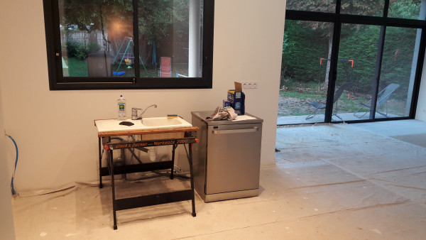 Bref, l'électricien vient à partir de demain pour 3 ou 4 jours, et le plombier vient vendredi pour au moins déplacer les tuyaux de la future cuisine.
