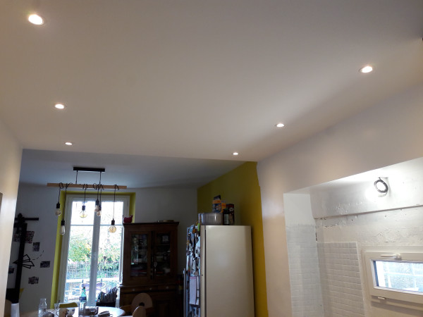 De retour de Saint Malo, la peinture est terminée pour l'instant (le reste sera fait après la pose de la cuisine, mais tout est fait dans l'extension et l'ancienne cuisine).