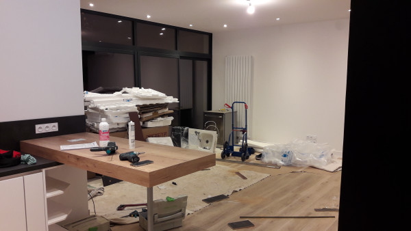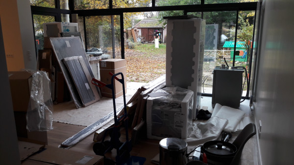 Habituellement la livraison se fait plusieurs jours en avance pour que le poseur n'ait pas à attendre avant de commencer à travailler. Là ça n'a pas été le cas, ce qui, en plus de faire râler le poseur, le met 3 heures en retard sur un chantier déjà un peu serré (la pose est prévue sur 2 jours, et il y a largement de quoi faire).