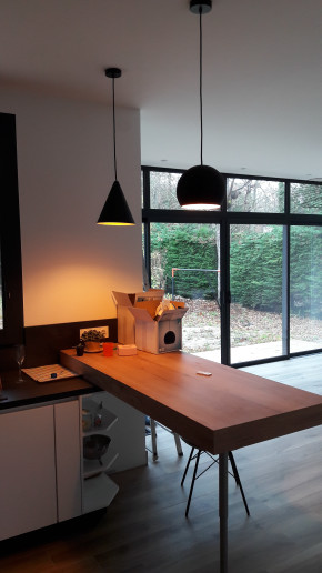 Opération déco, avec deux nouvelles lampes au-dessus de la table de la cuisine.