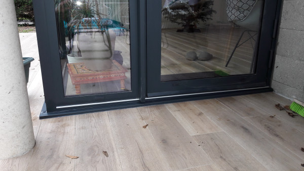 Passage de Sud Métallerie pour enfin ajouter la bavette sous la porte qui donne sur la terrasse. On passe de ça :