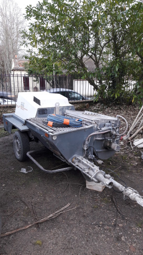 La machine qui va servir à projeter le ravalement sur les murs.