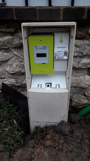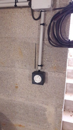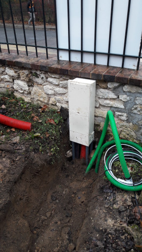 Après quelques galères pour contourner des câbles souterrains près du poteau électrique, l'installation des coffrets intérieur et extérieur est terminée.