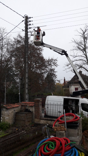 Enedis a aussi déposé l'ancien raccordement électrique, en prenant soin de ne pas le faire tomber dans les fondations toutes neuves.