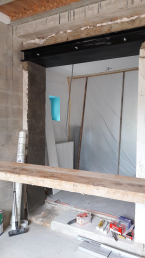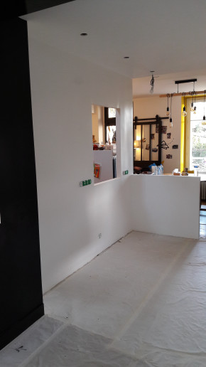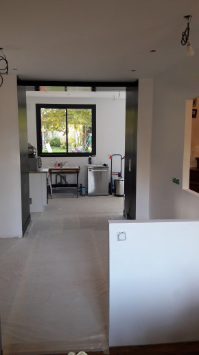 Dépose de l'ancienne porte de la cuisine et remplacement par une demie-cloison.