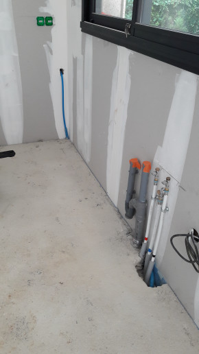 Il a déplacé les tuyaux qui devaient l'être, et après un aller-retour express à brico dépôt pour acheter les flexibles qui vont bien pour brancher notre évier antédiluvien sur les tuyaux tout neufs, il a gentiment fait les raccords.