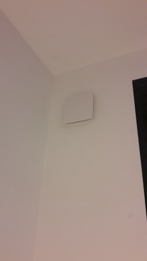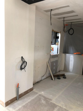 Autre raté, on voulait une extraction vers l'extérieur pour la hotte de la cuisine, mais on a complètement oublié de faire faire le trou. Du coup on va faire sans dans un premier temps (évidemment en plus l'endroit où on veut percer tombe mal et il va falloir percer en biais).