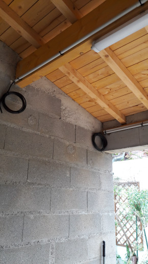 Quant à la cuve, sa trappe est posée et le raccordement aux gouttières est en cours.