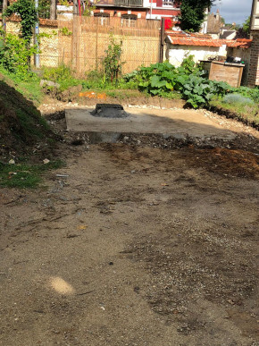 Le premier travail est de couler une dalle dans le sous-sol, qu'on a préparé le week-end précédent pour laisser le champ libre aux ouvriers.